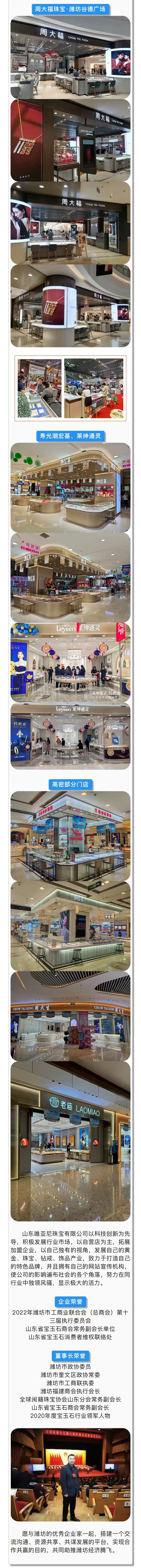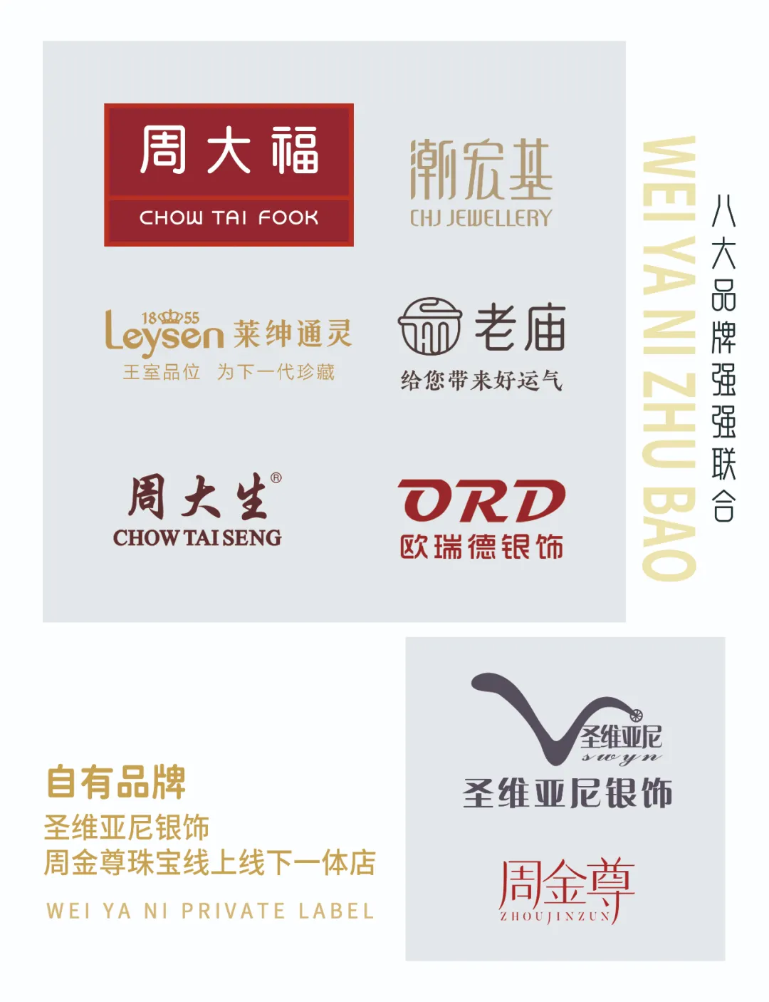 山东唯亚尼珠宝有限公司是一家集实体化、规范化正朝着集团化发展的大型黄金、珠宝、饰品公司,旗下经营有周大福珠宝、潮宏基时尚珠宝、莱绅通灵珠宝、周大生珠宝、上海老庙黄金、欧瑞德银饰等著名品牌,开发圣维亚尼银饰、周金尊线上线下一体店等自有品牌。