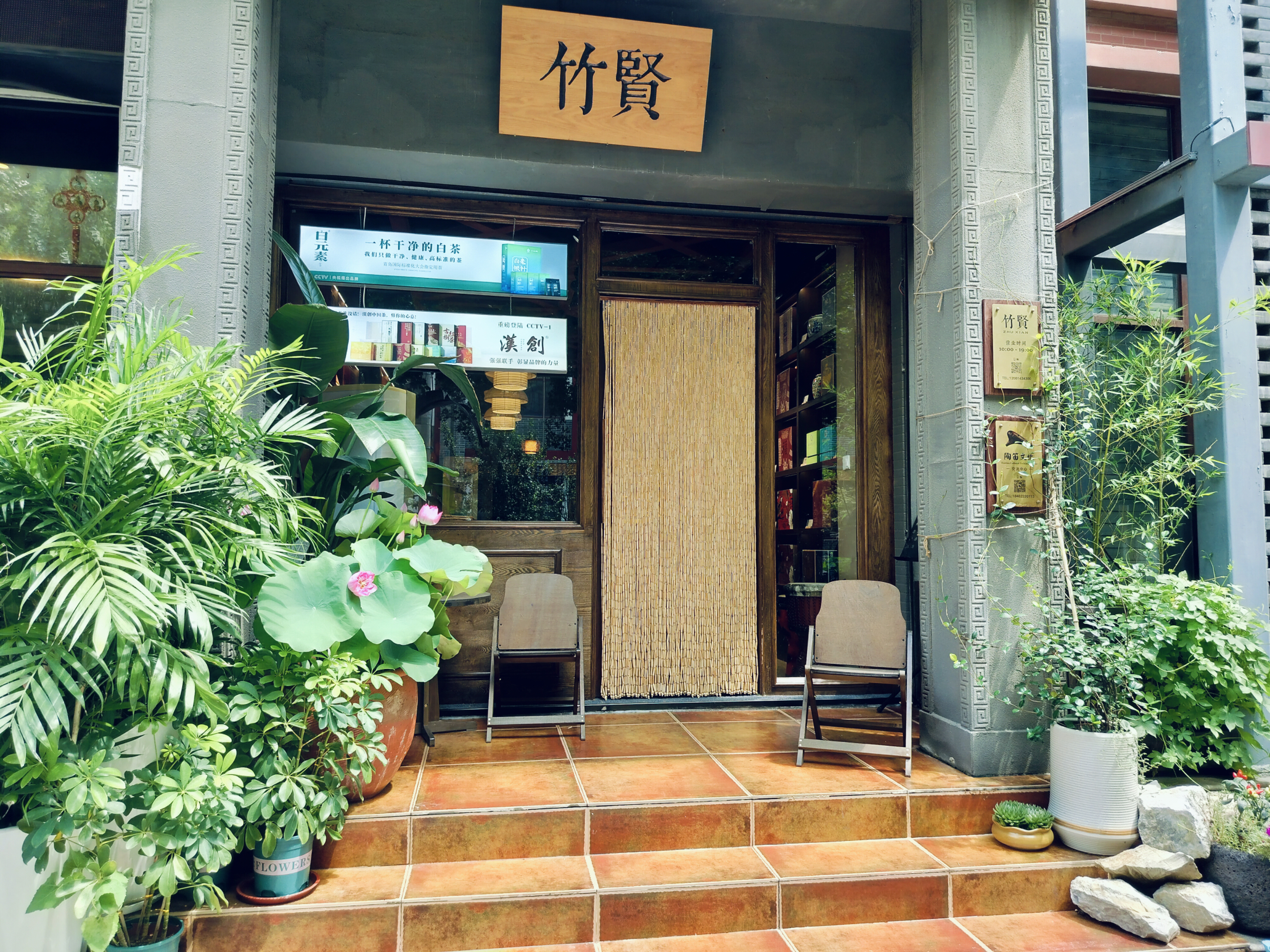 因为爱喝茶、爱交友,办公室也打造成了茶室茶空间的样子,起名《竹贤》,代理漢创中国茶和白元素白茶两个品牌,涵盖六大茶类。