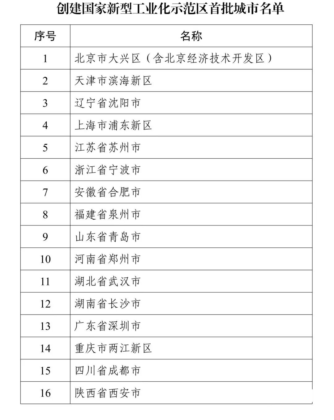 工业和信息化部近日公布创建国家新型工业化示范区首批城市名单,包括山东青岛在内,全国共16个创建城市上榜。