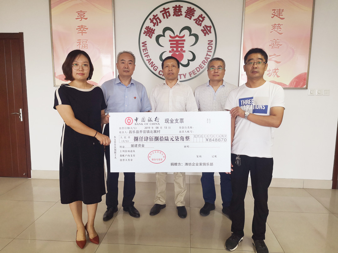 “一方有难,八方支援!洪灾无情,人间有爱。”潍坊东方企业家俱乐部自成立以来,一直以“慈善公益”作为六大服务板块之一,不断开展与参与公益帮扶活动,助力潍坊城市发展。