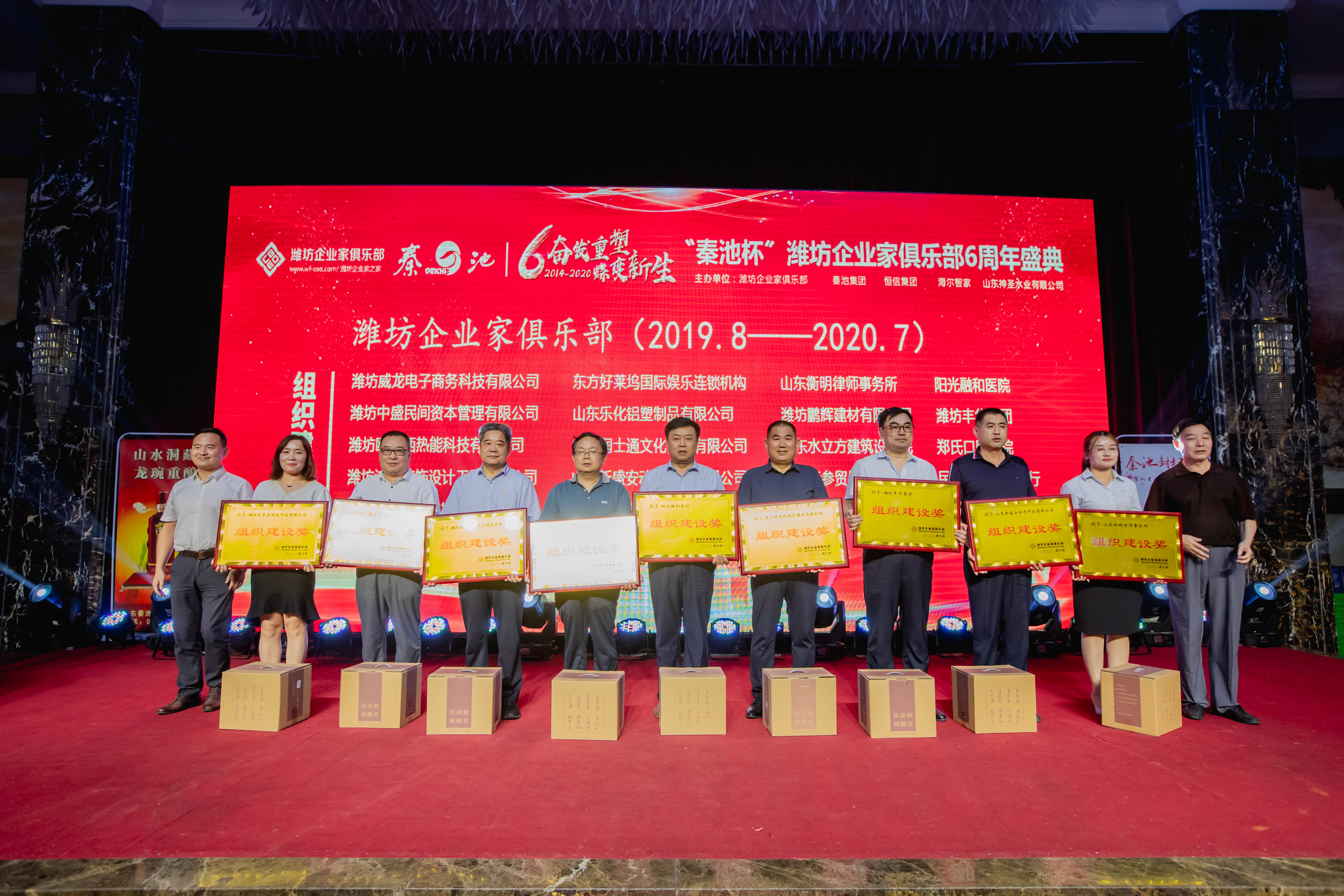 8月21日,由潍坊东方企业家俱乐部、秦池集团和恒信集团主办,山东艾琳智能科技有限公司承办,潍坊丰华(集团)公司、东方好莱坞国际娱乐连锁机构、邦泰地产、阳光融和医院、潍坊威龙电子商务科技有限公司、山东叁陆壹电子商务有限公司协办的奋发重塑·蝶变新生“秦池杯”潍坊东方企业家俱乐部六周年盛典晚会在新富佳悦大酒店成功举办。