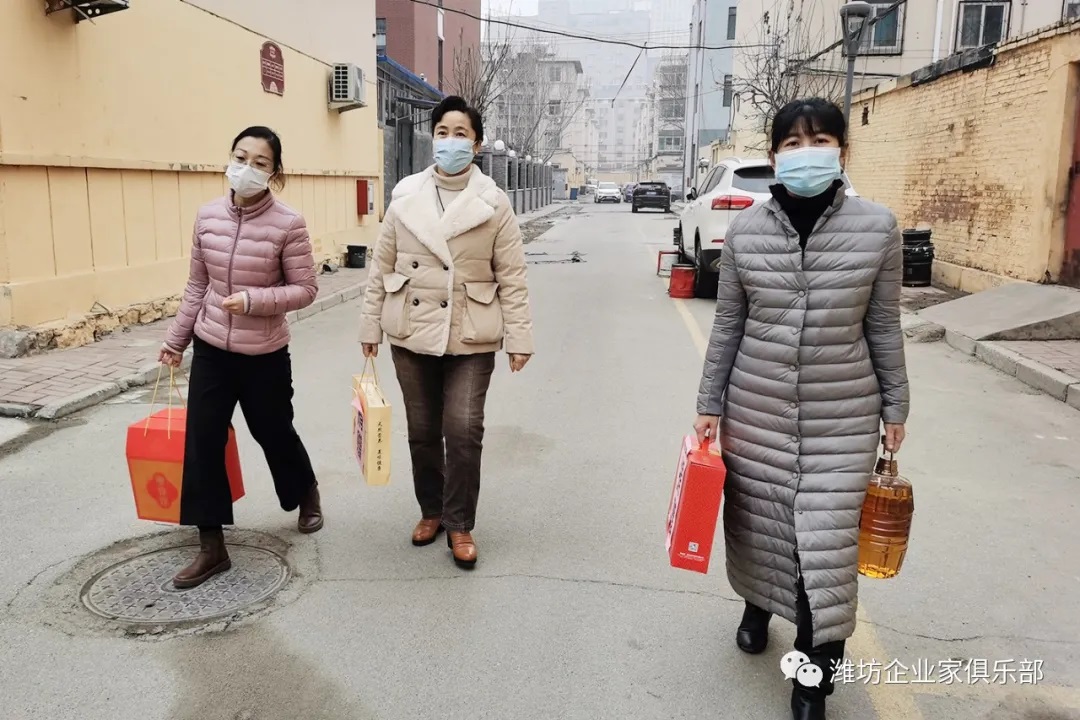 2021年1月22日下午,潍坊东方企业家俱乐部组织部分企业家会员走访了大虞街道与东关街道的部分困难家庭,为他们送去生活、防疫物资与新春的祝福。