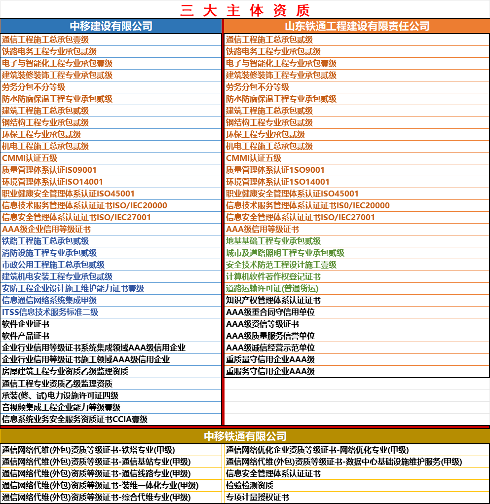 山东铁通工程建设有限责任公司为中移铁通全资子公司,本部设在济南,山东铁通总经理任董事长、总经理,是铁通唯一专业从事铁路各类工程、信息化系统集成的科技型公司。根据中移铁通十四五发展规划,该公司作为信息科技型、总部型公司打造并运营,面向全国开展铁路通信信息工程承建、系统集成、智慧产业平台化运营。