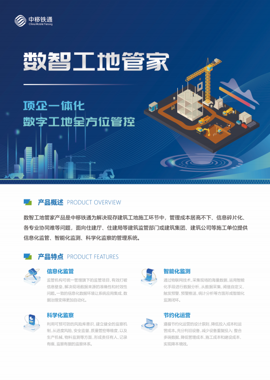 中移建设有限公司是中国移动旗下唯一的工程建设专业公司,承担着中国移动工程建设体系的管理与发展重责,集团内主要以5G网建设、家庭宽带网建设、新型信息基础建设(物联网、数据中心)为主,拥有一支“资质优、能力强、全流程、高价值”的专业工程队伍,致力于为用户打造高品质、高价值的工程服务。