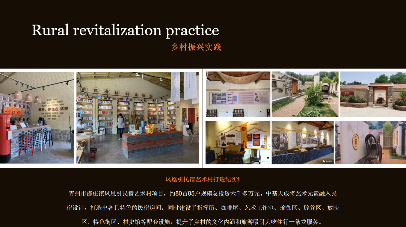 ·山东区域:临朐金城大酒店(四星)、昌城大酒店(四星)、青州凤凰引民宿艺术村、青州 76 所校园电视台 / 录播室、新松机器人展厅、富士康农业展厅、鲁欧智造办公楼、潍坊高新区怡心社区改造等。