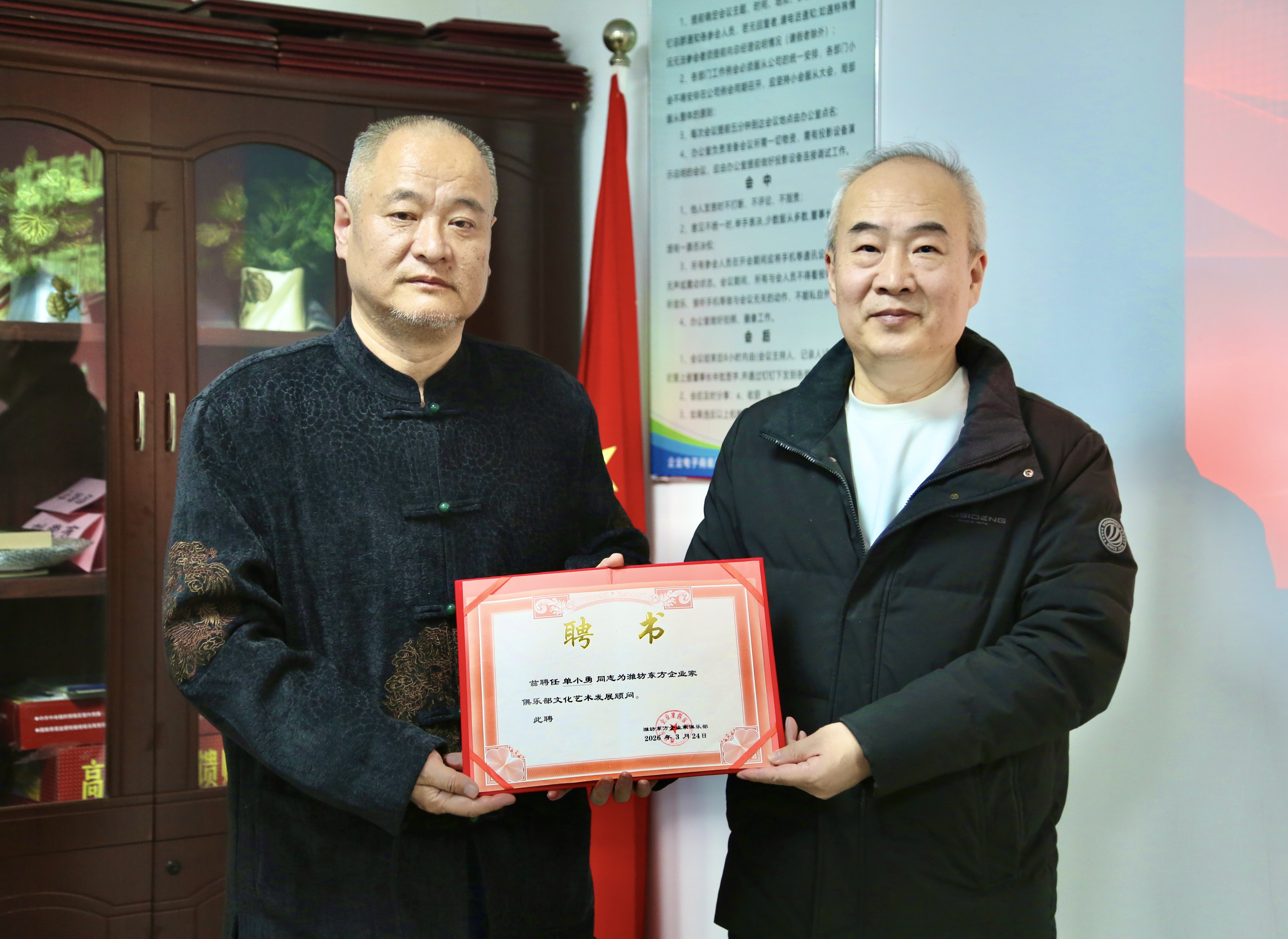 为深化合作实效,充分发挥书画艺术对企业家精神涵养和综合素质提升的引领作用,企业家俱乐部向单小勇先生颁发了"企业文化艺术发展顾问"聘书,邀请其为俱乐部企业文化艺术建设提供专业指导。单小勇先生表示,将积极履行顾问职责,助力俱乐部搭建更高质量的文化交流平台,推动书画艺术与企业发展深度融合。